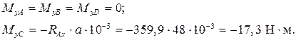 Строим эпюру изгибающих моментов в горизонтальной плоскости “My ”