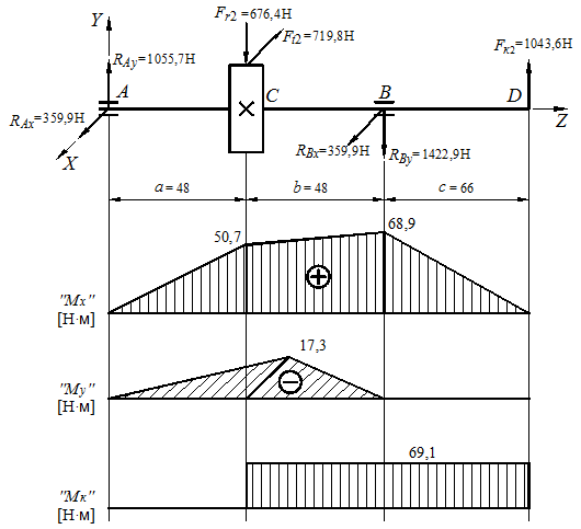 Определяем суммарные изгибающие моменты в опасных сечениях