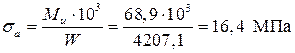 где Ми – изгибающий момент в расчетном сечении, Ми = 68,9 Н∙м;