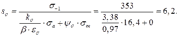 – коэффициенты, характеризующие чувствительность материала к асимметрии цикла изменения напряжения: ψσ = 0; ψτ = 0;