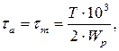 Амплитудное и среднее значение касательных напряжений определяется по формуле: