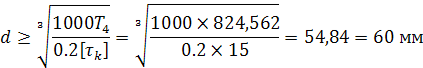 Исходя из значения диаметра выходного вала, принимаем d=60 мм.