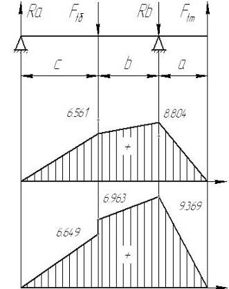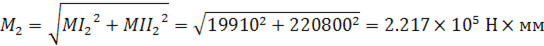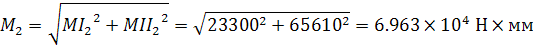 Определим суммарные изгибающие моменты, действующие в сечениях вала: