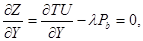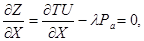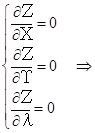 Частные производные от Z находятся для каждой переменной и приравниваются к нулю для установления условий первого порядка: