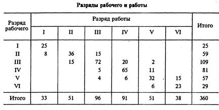 Анализируя данные, приведенные в табл.1, следует отметить, что на практике добиться полного совпадения разрядов рабочих с разрядом выполняемых работ невозможно. Далее необходимо учитывать, что если рабочий выполняет работу ниже по разряду, чем присвоенный ему разряд, то он имеет право требовать доплаты, если же рабочему низкой квалификации поручить