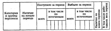 По данным о наличии и движении кадров в целом и по категориям и группам персонала при необходимости строится баланс движения кадров (баланс ресурсов рабочей силы) по следующей примерной схеме.