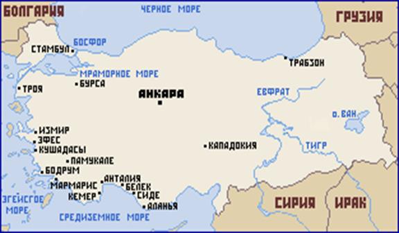 Странная страна Турция… Земля горных хребтов, плоскогорий и плодородных долин: она единственная расположена на двух континентах - Европейском и Азиатском, которые разделены Мраморным морем и проливами Босфор и Дарданеллы. Когда-то, сотни тысячелетий назад, и Босфор и Дарданеллы были горными реками, но после того, как горные цепи, соединявшие Грецию с Малой Азией, опустились в море, они стали проливами.