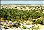 На возвышенных местах растут тамариск, акации, и только в оазисах выращивают финиковые пальмы, апельсины, мандарины, манго, бананы благодаря удивительно продуманной системе подземного водоснабжения. Кстати, финики долгое время служили предметом экспорта. Фалядж (старинные каналы) и каляди (колодцы) облицовывались хорошо пригнанными плитами из песчаника настолько плотно, что некоторые из них служат до настоящего времени. В современных городах селениях проблема эта решается иначе: к каждой пальме подведен свой искусственный ручеек, работа которого контролируется компьютером. Говорят, что владелец 10 пальм - богатый человек не потому, что собирает урожай фиников, а потому, что в тени этих пальм он может выращивать помидоры.