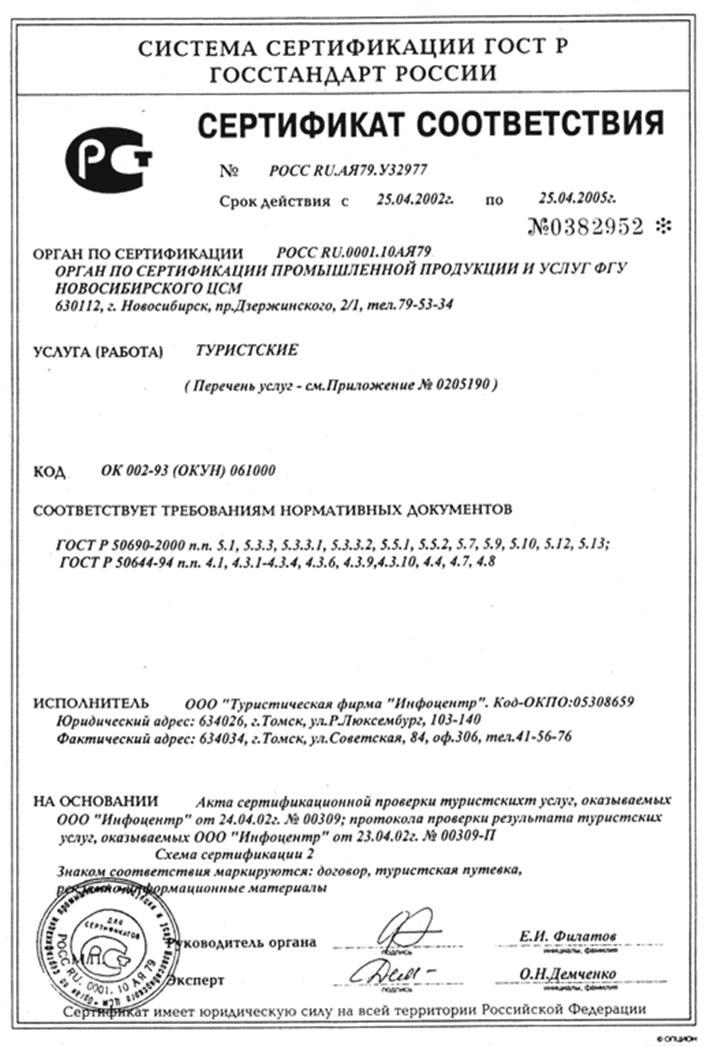 ГОСТ Р 50690-2000 « Туристские услуги. Общие требования ».
