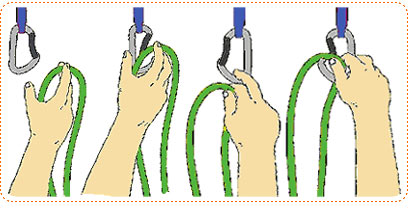 Страховка через тормозное устройство, расположенное на беседке страхующего