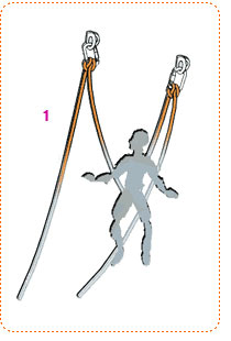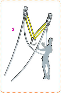 — состоит из беседки и обвязки, либо только из беседки, одевается на человека. Веревка ввязывается в систему или присоединяется к системе с помощью карабина с муфтой.