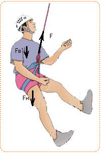 Теперь рассчитаем время воздействия рывка на сорвавшегося и распределение этого рывка во времени. После срыва человек падает вниз и веревка начинает нагружаться, тормозя падение человека и действуя как амортизатор. На человека со стороны веревки действует силы: