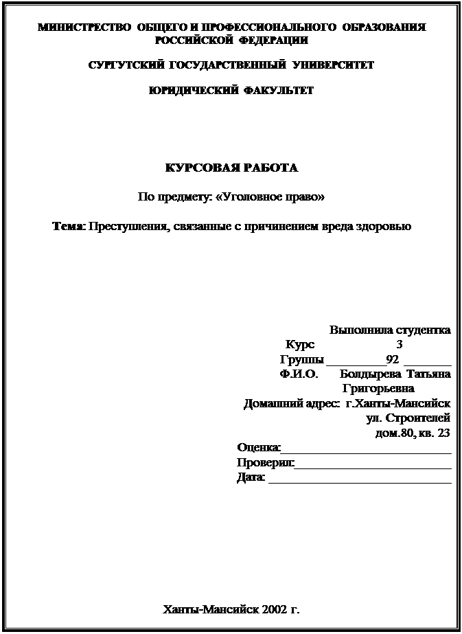 Реферат: Преступления, связанные с причинением вреда здоровью