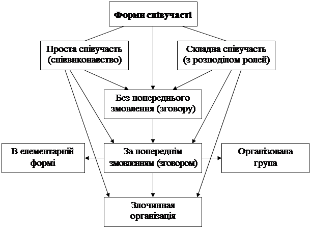 Таким чином форми співучасті можна зобразити такою схемою[10] :
