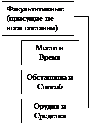 Объективная сторона — это один из четырех элементов состава преступления. Анализируя нормы Особенной части Уголовного кодекса, мы видим, что только один из указанных выше признаков объективной стороны преступления постоянно присутствует в конкретных составах преступлений. Это — общественно опасное деяние. Остальные признаки имеют место только в отдельных конкретных составах. Последствия и причинная связь встречаются достаточно часто, а остальные признаки — место, время, способ, средства, обстановка — значительно реже. В связи с этим в уголовном праве все указанные признаки делят на две группы: обязательные и факультативные.