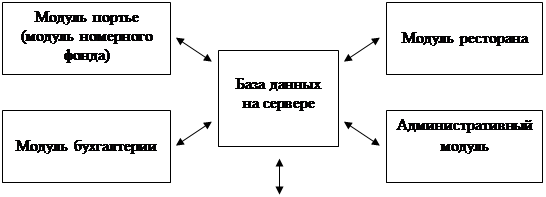 Типовая система автоматизации деятельности средств размещения в своей структуре объединяет отделы гостиницы, находящиеся в оперативном взаимодействии друг с другом. Физически вся генерируемая информация находится на центральном сервере предприятия и представляет собой базу данных, объединяющую вполне стандартный набор базовых таблиц: номера, клиенты, бронь, счета, отчеты.