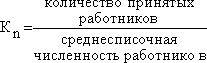 Коэффициент оборота по приёму (Кn ) Коэффициент оборота по выбытию (Кв ) Коэффициент текучести кадров (Кт ) Коэффициент постоянства кадров (Кпост ) |