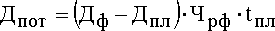 Если фактически одним рабочим отработанно меньше дней и часов, чем предусматривалось планом, то можно определить сверхплановые потери рабочего времени: целодневные (Дпот