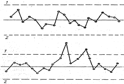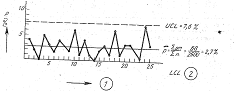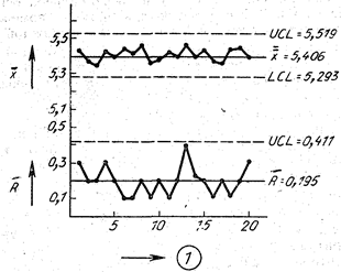 4. Долю дефектных изделий, число дефектных изделии и показатели качества контролируют с помощью контрольных р- карт, рn-карт и (х— R)-карт.