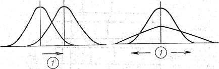 Как уже говорилось выше, насколько бы идентичными ни были условия производства, показатели качества всегда имеют определенный разброс. Автоматизация производства уменьшает разброс, но не устраняет его совсем. Однако при внимательном рассмотрении можно видеть, что разброс подчиняется определенным закономерностям. Обычно частота разброса оказывается максимальной в центре зоны разброса, а чем дальше от центра, тем частота меньше, т. е. чаще; всего разброс подчиняется нормальному закону распределения. Следовательно, систематизируя показатели качества и анализируя построенную для них гистограмму, можно легко понять вид распределения, а определив среднее значение x’