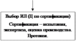 | 3. Выбор испытательной лаборатории. Подписание договора, представление необходимой технической документации и образцов для испытаний. | 4. Отбор образцов для испытаний. 5. Аттестация производства (если предусмотрено схемой сертификации). 7. Принятие решения о выдаче сертификата и лицензии на право применения знака соответствия. 8. Оформление и регистрация сертификата и выдача сертификата и лицензии на право применения знака соответствия заявителю. | 4. Отбор образцов для испытаний. 6. Проведение испытаний и оформление протоколов. |