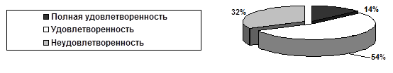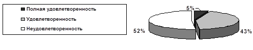 Полностью удовлетворены данной категорией всего лишь 5% опрошенных, 43% удовлетворены данной категорией, однако имеют определенные трудности в использовании своих знаний, умений и навыков. Особое внимание следует обратить на то, что более половины опрошенных –52% не удовлетворены данной категорией, т.е. при выполнении работы они не испытывают чувства успеха и удовлетворенности за свой труд.