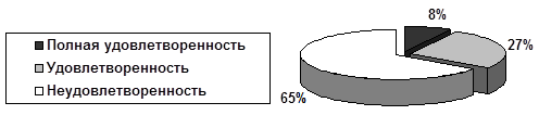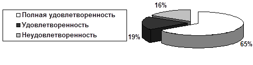 Полностью не удовлетворены выполняемой работой и занимаемой должностью 16% - 6 человек. Причиной полной неудовлетворенности может быть как плохая мотивация, неподходящая организация труда, так и другие психологические и социальные факторы. Этим людям следовало бы задуматься об перемене рода деятельности.