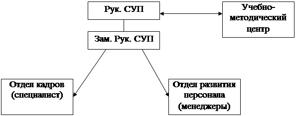СУП в начальный период деятельности фирмы, имея уже штат сотрудников, как правило, выступает как штабное звено всей ОС. С течением времени и по мере деятельности фирмы на рынке, СУП приобретает исполнительно-распределительные функции и напрямую участвует в управлении деятельностью всей фирмы.
