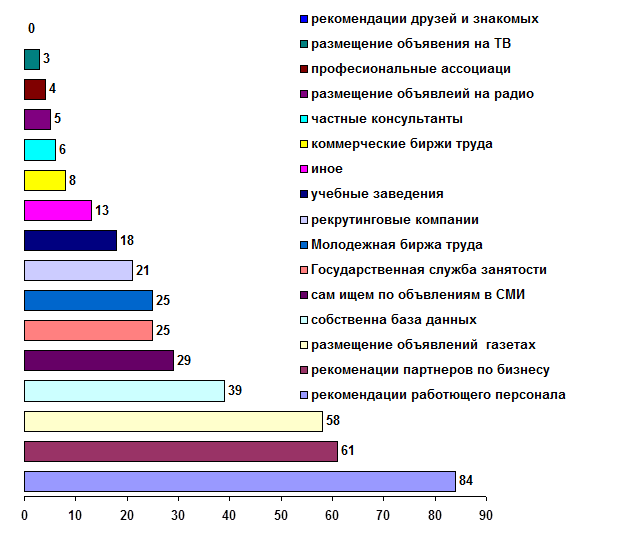 Рекомендации людей, непосредственно делающих бизнес, признаются респондентами наиболее эффективным, дешевым и быстрым источником найма (таблица 1.2.2). При этом надо помнить, что этот ресурс не безграничен.