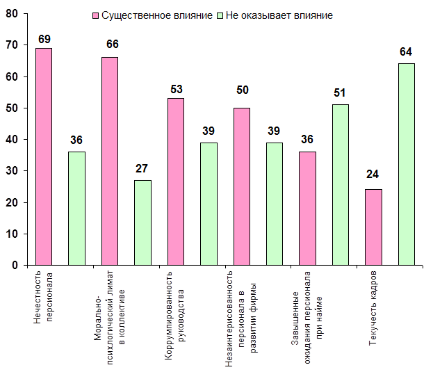 Низкая квалификация руководителей предприятий и кадровых служб в области управления и юриспруденции вызывает неурегулированность внутренней структуры. Вследствие этого падает общая конкурентоспособность компании, эффективность как управления в целом, так и отдельных организационных мероприятий.